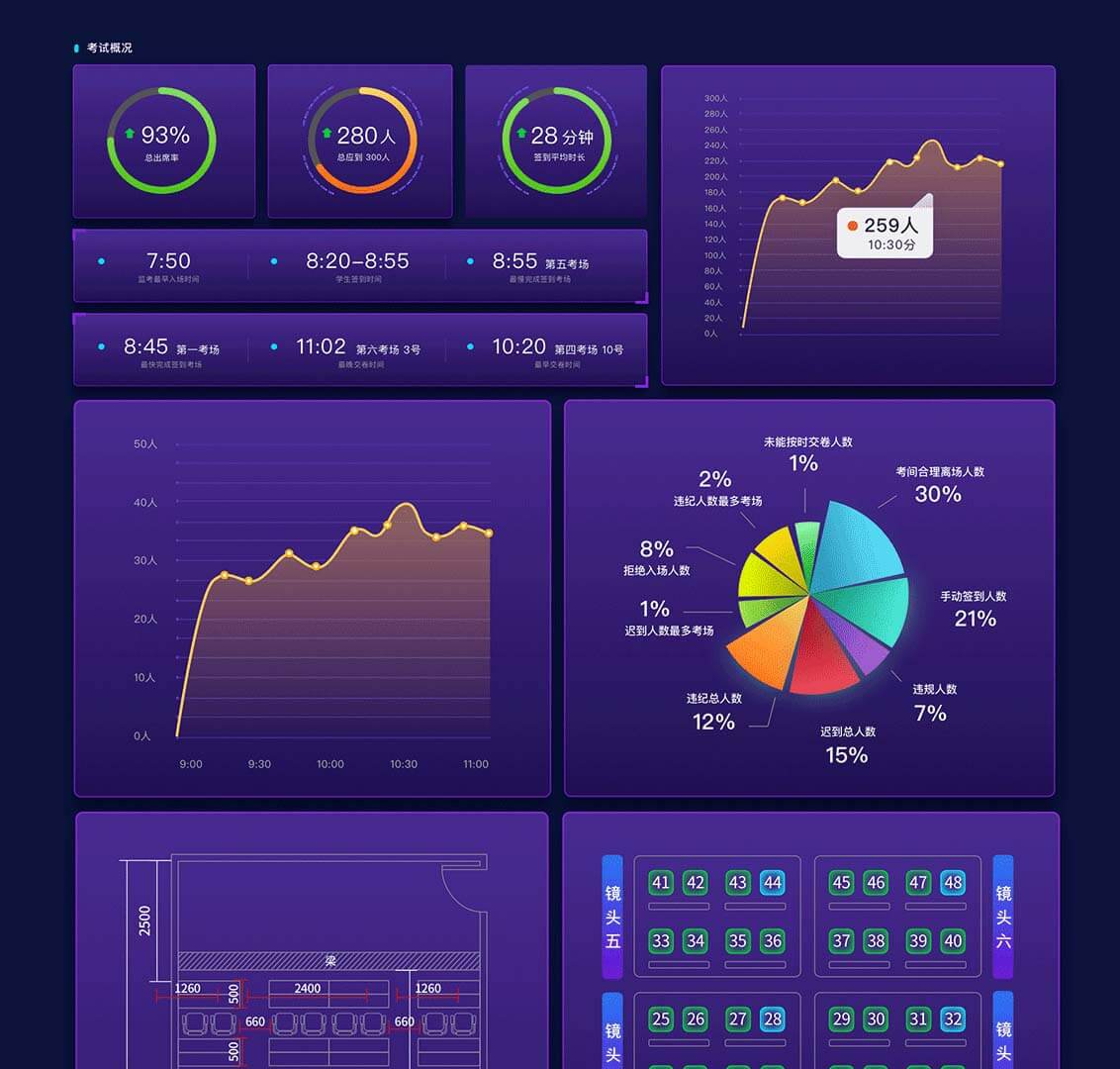 端到端的智能考場解決方案,基于先進的深度學習算法與計算機視覺感知技術、結合考試業務中的典型場景,建設智能考試AI大腦+視覺傳感器的全名感知體系,幫助傳統考試實現智能升級,提升考場權威性、安全性和效率。